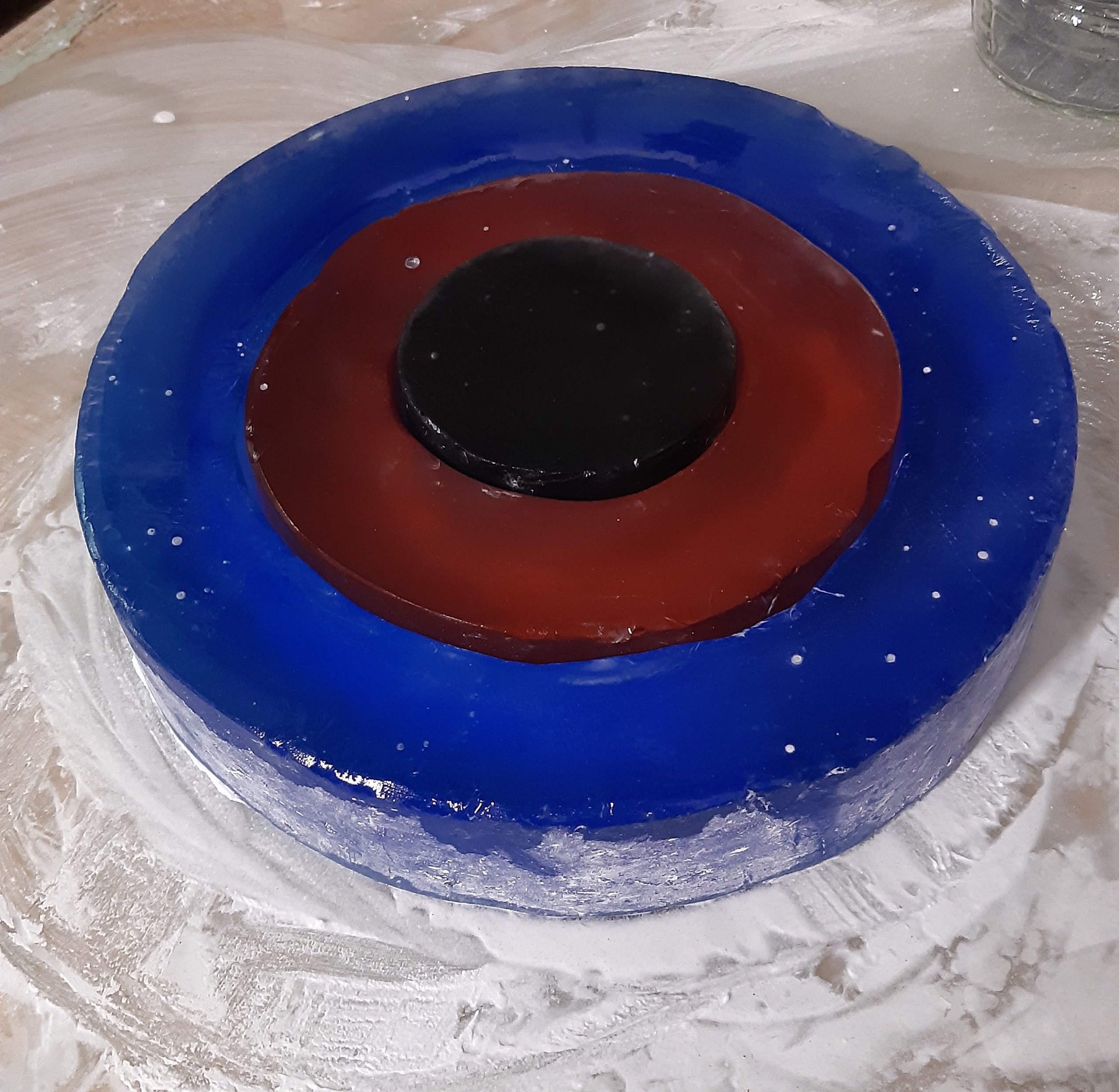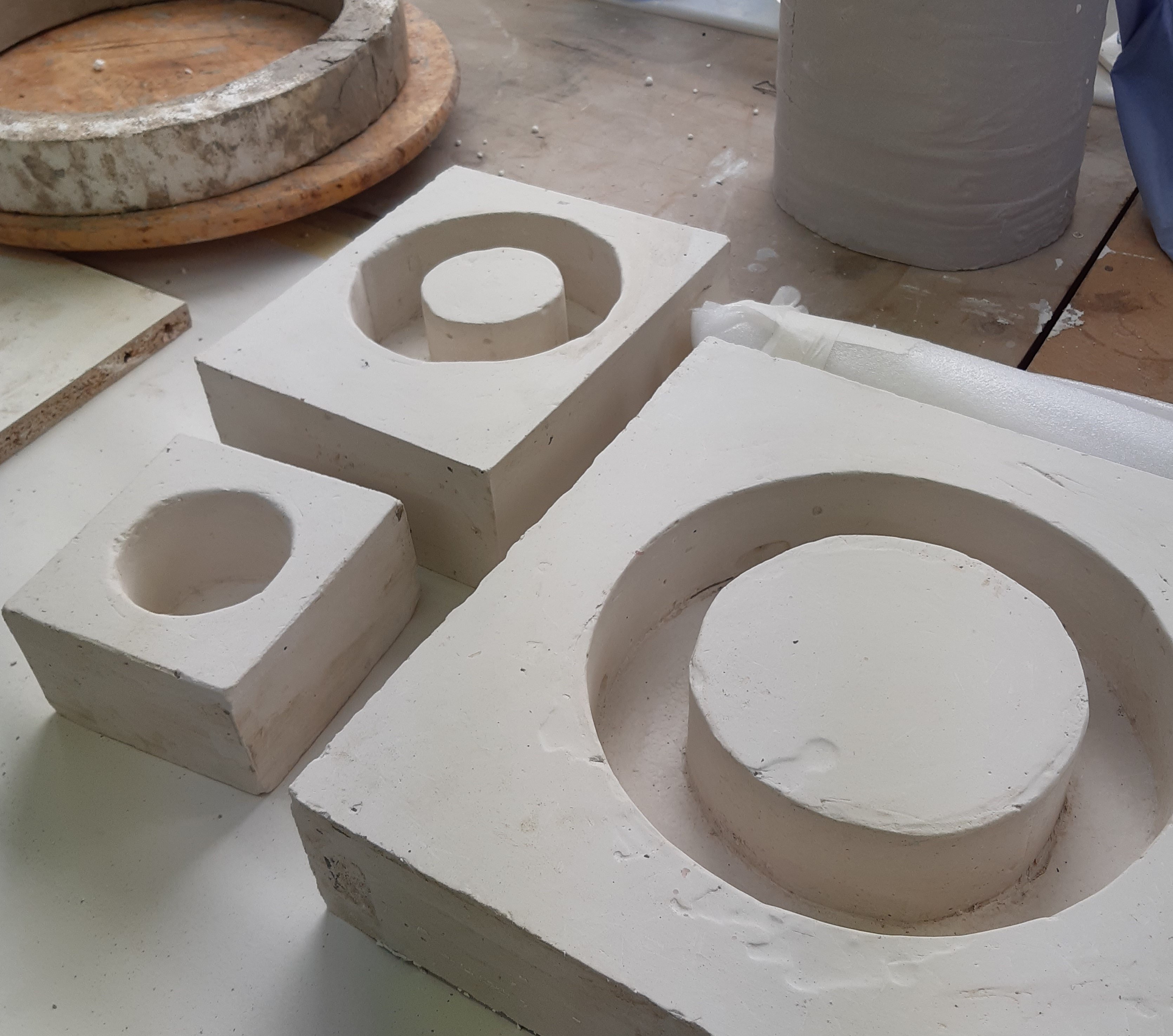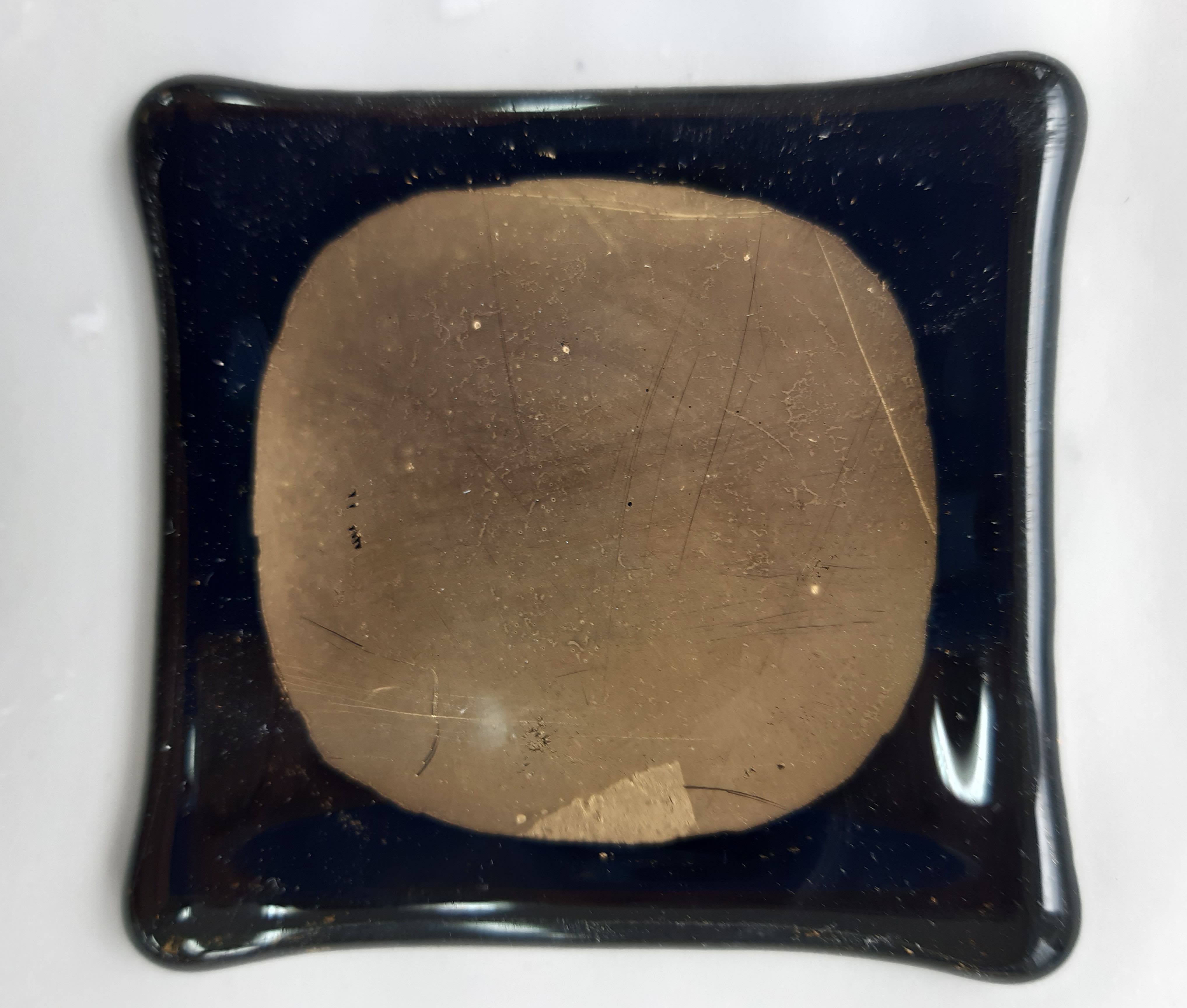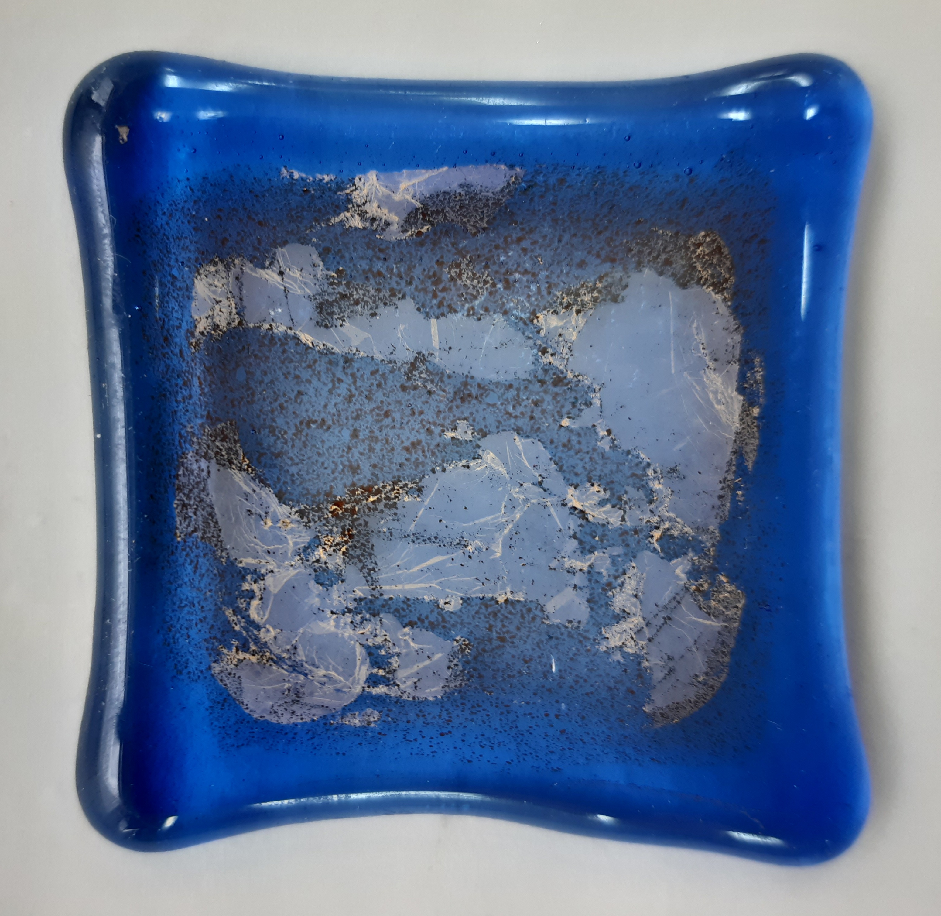 My aim was to explore the potential of glass as a material that works with other forms and media within my practice. I experimented with different colour glass, casting them separately with the aim of fusing and slumping abstract forms. I experimented with embossing and used stencils to apply painted pigment and gold leaf.